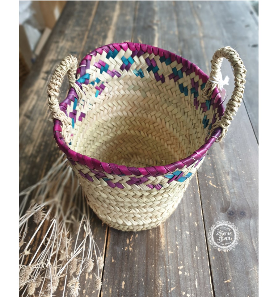Madam Stoltz Seegras Korb natur fuchsia/B-Ware