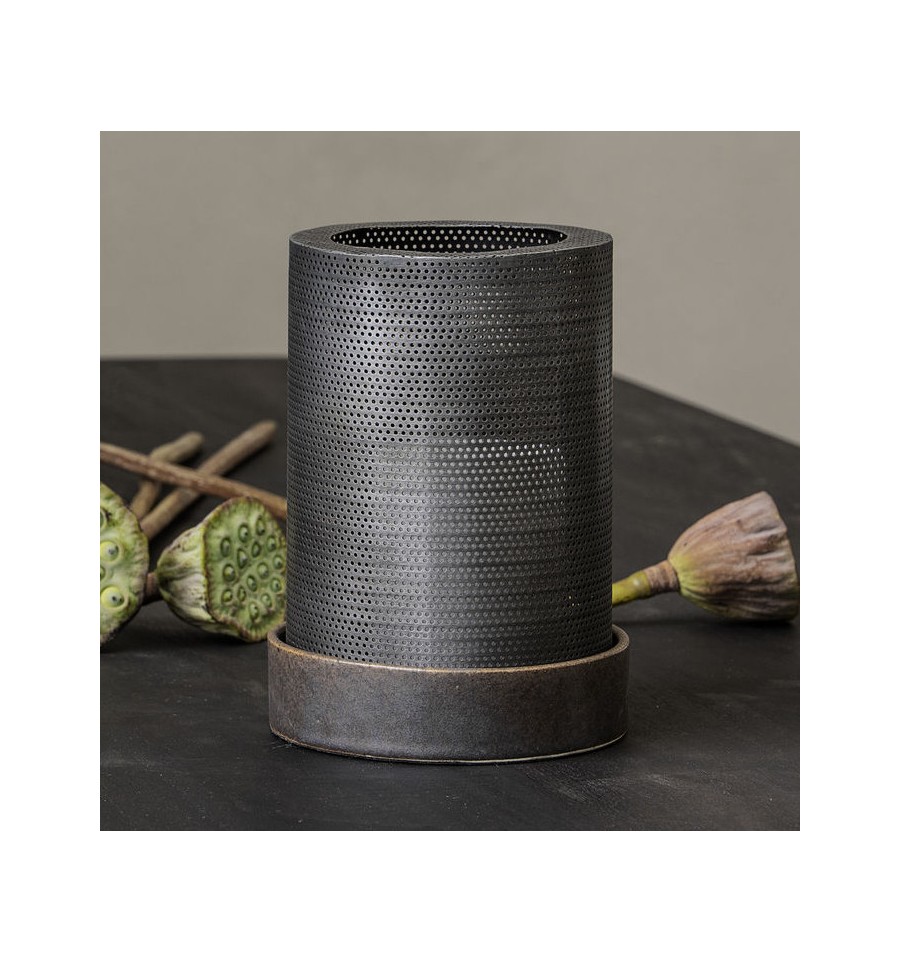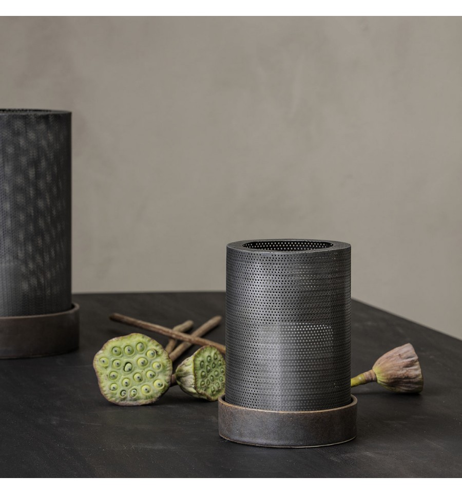 Diese wunderschöne Laterne von House Doctor namens Bash spendet dank der kleinen Löcher im rauen Stahl ein ganz besonderes Licht. Kombinieren Sie eine oder mehrere Kerzenhalter mit Vasen und Blumentöpfen, um ein persönliches Stillleben auf einer Fensterbank oder auf dem Esstisch zu gestalten.