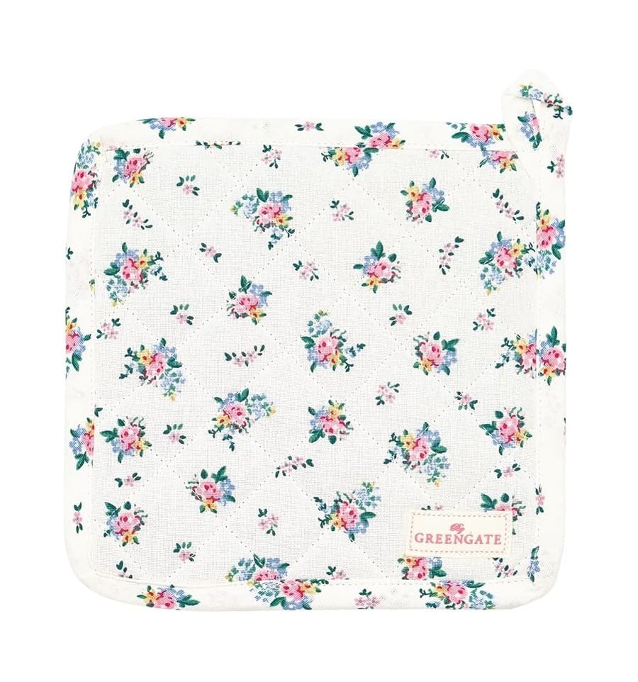 Topflappen 2er-Set aus der Serie Augusta white von GreenGate. Mit dem bezaubernden Blumenmuster sieht der Baumwoll-Topflappen nicht nur fantastisch aus, sondern kann auch vielseitig in der Küche genutzt werden. Die Designs der Serien kann man zudem perfekt untereinander kombinieren.